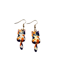 1 Par de Brincos de Gatinhos esmaltados em várias cores com Caldinha pindurada.