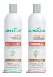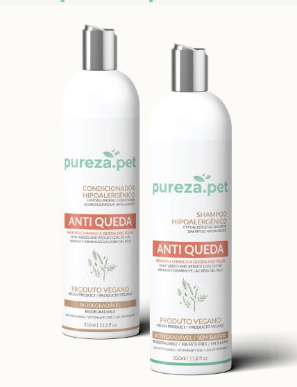 A linha antiqueda da Pureza.Pet possui ativos e extratos que agem na pele dos pets atuando diretamente no envelhecimento em nível celular. Seus nutrientes melhoram a saúde da pelagem reduzindo a queda e fortalecendo os pelos.